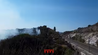 Los Bombers de la Generalitat trabajan en la extinción de un incendio forestal en La Jonquera (Girona) la mañana de este miércoles con 26 dotaciones terrestres y 5 medios aéreos.