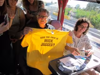 En varios mítines, diferentes oradores de ERC han definido a Tardà como el Mick Jagger del independentismo por ser un referente de los republicanos, por lo que, tras subirse al bus, ha recibido como regalo una camiseta con el siguiente estampado: 'Who the fuck is Mick Jagger?''.