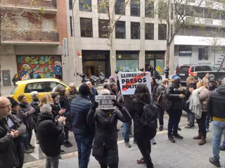 La concentración estaba convocada a las 10.00 horas por los CDR ante la posibilidad de que en los próximos días ERC y PSOE cierren el acuerdo de investidura, y los CDR congregados han gritado consignas contra la negociación como 'No a todo', 'Nuestros votos no tienen precio' y 'Estáis pactando con el 155', entre otras.