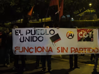 Vigilados de cerca por policías locales y sin causar incidentes, los activistas han hecho sonar bocinas y también consignas propias de los 'indignados', como 'No hay pan para tanto chorizo', junto a una pancarta con la leyenda 'El pueblo unido funciona sin partido'.