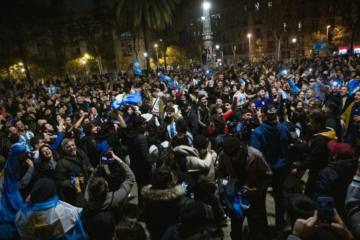 Unos 300 aficionados argentinos, según el Ayuntamiento de Barcelona, han celebrado este martes por la noche en el centro de Barcelona la victoria de Argentina, tras ganar a Croacia por 3-0, y que la convierte en la primera finalista del Mundial de fútbol de Catar.