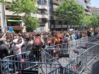 'Esto nos pasa por un Gobierno facha' y 'Mariano no llegas al verano" han sido las dos proclamas más escuchadas ante la sede popular, acordonada y vigilada hasta por 16 furgonetas de los Mossos d'Esquadra.