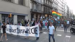 La manifestación ha sido convocada desde la campaña 'Tancarem els CIEs', formada por organizaciones como Tanquem els CIEs, SOS Racisme Catalunya, Stop Mare Mortum, Migrastudium, Òmnium Cultural, ANC y PAH, entre otras.