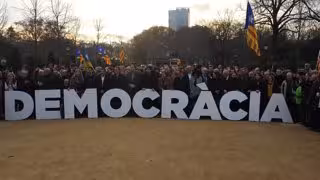 Además de esta concentración, Forcadell ha sido acompañada a pie desde el Parlament hasta el TSJC por cientos de cargos electos de toda Catalunya, que también la han flanqueado de vuelta al Parlament tras su comparecencia judicial.