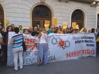 Unas 3.000, según fuentes policiales, se han concentrado este jueves por la noche en la plaza Sant Roc, en Sabadell, como protesta por el encarcelamiento provisional de siete miembros de los Comités de Defensa de la República (CDR).