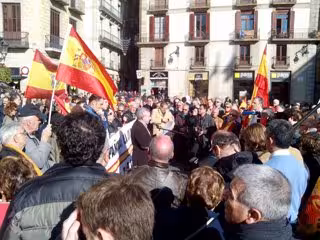 Lo han hecho convocados por la asociación D'Espanya i Catalans, que también organizó la concentración del día de la Hispanidad en la plaza Catalunya de la capital catalana.
