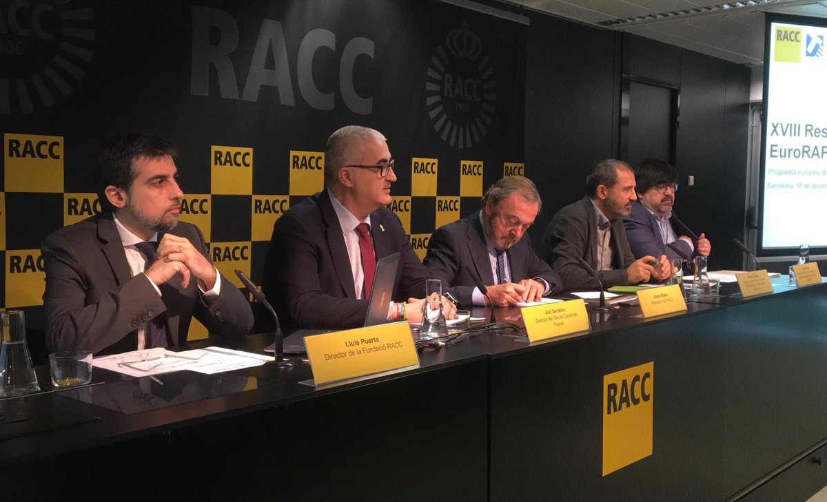El director del RACC, Josep Mateu, junto al resto de representantes de las entidades que han colaborado en la elaboración del estudio EuroRAP - EUROPA PRESS