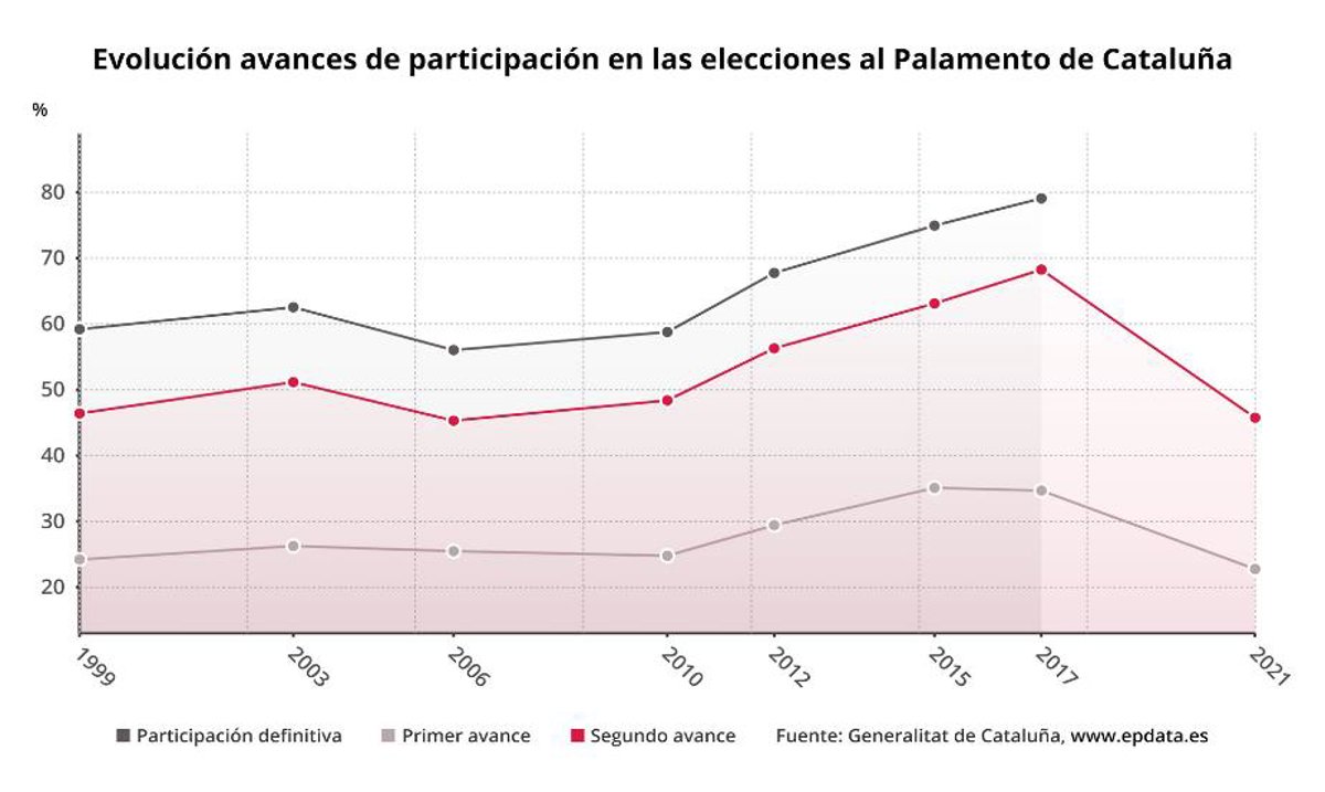 Ha destacado que, en comparación a las elecciones catalanas del 2012, hay un descenso de 10 puntos, y respecto a los comicios de 2010, un descenso de 3 puntos.