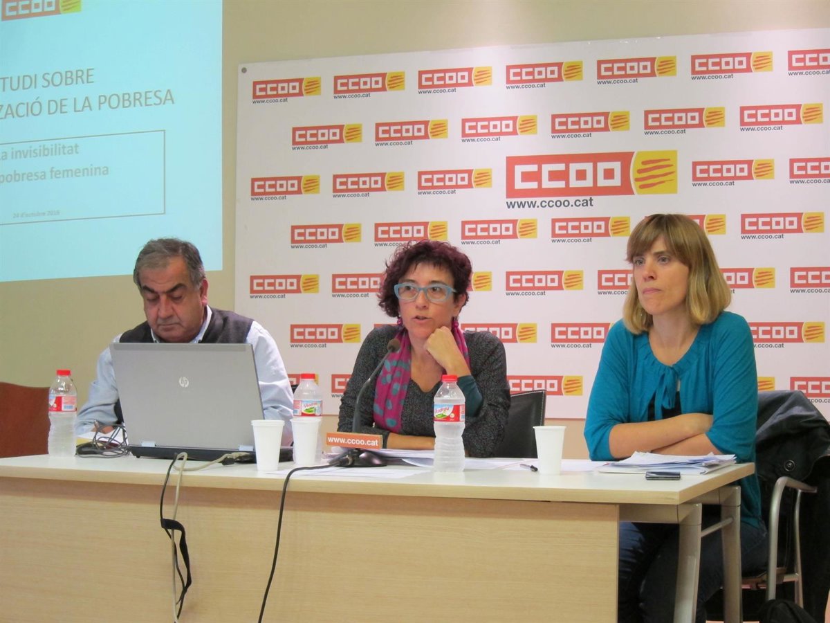 CC.OO. de Catalunya ha alertado este lunes de que el 49,7% de las mujeres catalanas está en riesgo de pobreza según sus rentas individuales, frente al 25,7% de los hombres, ha alertado en rueda de prensa la secretaria de Mujer y Cohesión Social del sindicato, Alba Garcia.
