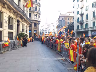 La concentración se ha producido después de que algunos salieran de la manifestación que había convocado a mediodía Societat Civil Catalana (SCC) en el paseo de Grcia y la plaza Catalunya (cercana a la Jefatura).
