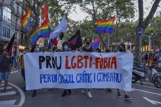 Jóvenes durante la concentración contra agresiones LGTB-fóbicas, a 9 de julio de 2021, en Barcelona. - David Oller - Europa Press