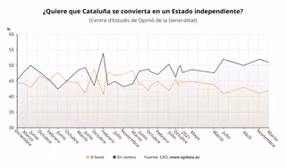 El 51% de los catalanes se muestra en contra de la independencia de Catalunya, mientras que el 42% se posiciona a favor, según una encuesta del Centre d'Estudis d'Opinió (CEO) de la Generalitat.