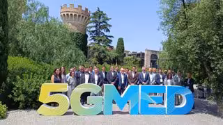 Parte del equipo del proyecto europeo 5GMED, que reúne a 21 socios de siete países europeos, en Peralada (Girona), donde han presentado sus conclusiones tras cuatro años de trabajo, a jueves 27 de junio de 2024 - EUROPA PRESS