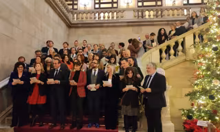 Unos 60 diputados del Parlament dan la bienvenida a la Navidad con villancicos en la escalera noble de la Cámara catalana - EUROPA PRESS