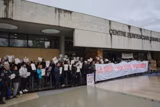 Unos 60 funcionarios de prisiones protestan ante la cárcel de Brians 2, en Sant Esteve Sesrovires (Barcelona), donde decenas periodistas esperan la posible salida del futbolista Dani Alves.