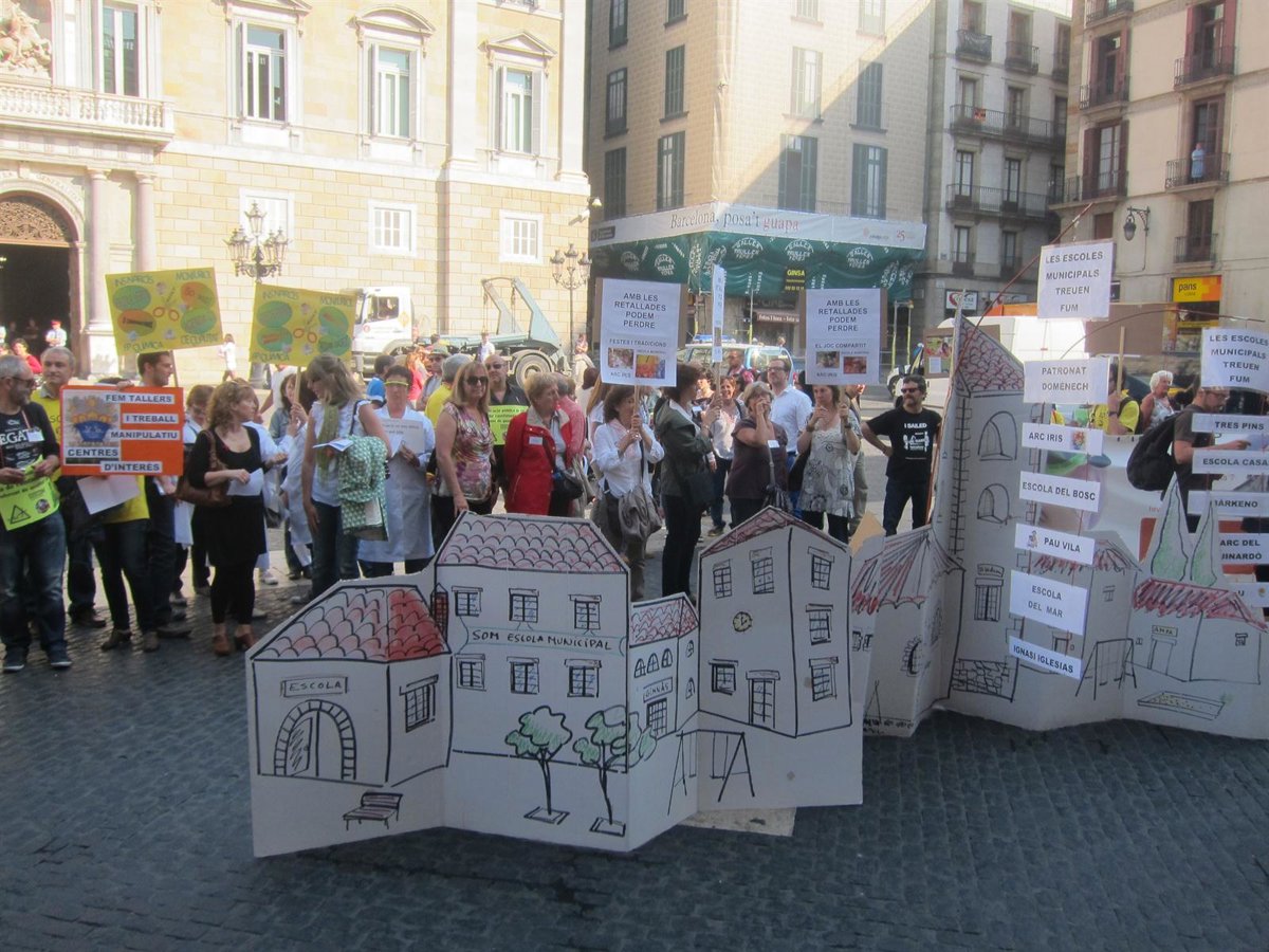 Unos setenta profesores de las escuelas públicas de Barcelona se han concentrado este viernes en la plaza Sant Jaume, ante el edificio consistorial y antes del pleno municipal, para rechazar los recortes educativos y reclamar al Gobierno municipal encabezado por Xavier Trias (CiU) que no aplique los ajustes dictados por el Govern y mantenga el actual modelo.