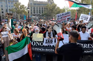 Los manifestantes han llevado carteles con las proclamas 'No es una guerra, es un genocidio palestino', 'Mataron a mi sobrina y a mi cuñada y nadie movió nada porqué no tenían ojos azules', 'Free Palestine' y 'Viva la resistencia palestina'.
