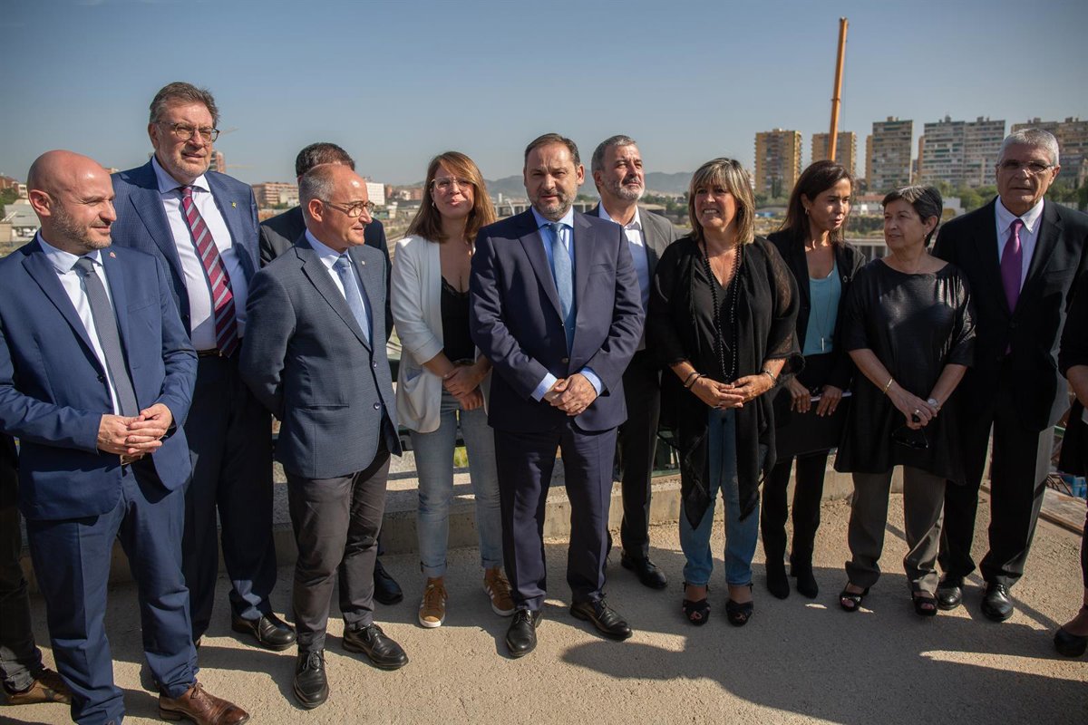 El ministro de Fomento en funciones, José Luis Ábalos (5i), la teniente alcalde de Barcelona, Janet Sanz (3d) y el presidente de Renfe , Isaías Táboas (1d) durante su visita a las obras de la futura estación ferroviaria de La Sagrera, junto a otras auto - David Zorrakino - Europa Press