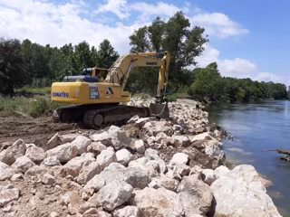 Trabajos para reforzar los márgenes en un tramo de río - AGÈNCIA CATALANA DE L'AIGUA