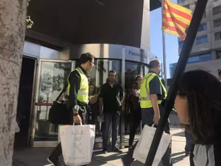 Ocho horas después de su llegada, los seis vehículos del Instituto Armado han abandonado la sede departamental accediendo primero al parking subterráneo de la Conselleria, donde supuestamente han recogido a los detenidos.