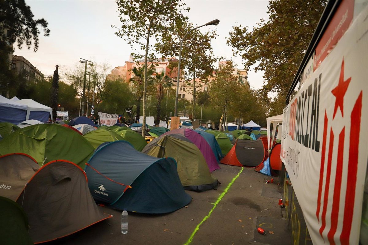 Los jóvenes acampados en la plaza Universitat de Barcelona han pasado la cuarta noche consecutiva, con tensión ante "un más que probable desalojo", han informado fuentes de la acampada a Europa Press.