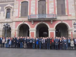 Tal y como estaba previsto, los diputados, con De Gispert al frente, se han situado ante las puertas del Parlament para guardar el minuto de silencio, y entre los más afectados estaban los representantes de ERC por la muerte en el siniestro de la esposa del jefe de gabinete de Oriol Junqueras, Lluís Juncà.