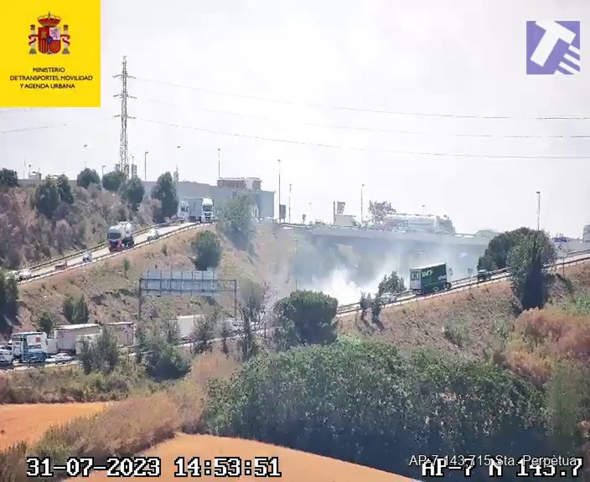 Un accidente corta la autopista AP-7 a la altura de Santa Perptua de Mogoda (Barcelona) en dirección norte. - @TRANSIT