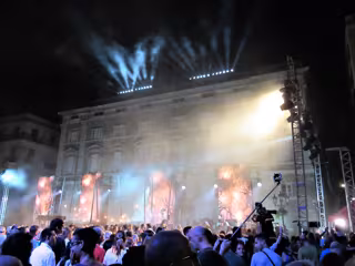 El acto también ha tenido referencias al 1-O: se han proyectado en la fachada de la Generalitat imágenes de las cargas policiales que hubo, y la cantante Judit Neddermann ha interpretado 'No volem més cops' --'No queremos más golpes'--.