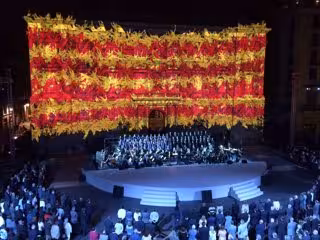 También han bailado para la ocasión Cesc Gelabert, Bebeto y Marina Cidra, Xavier Bagà y Glòria Gella, y se ha cantado 'El cant de la senyera' y 'Els segadors', en un acto que ha durado poco más de una hora y en que se han oído gritos de 'Independència' de los ciudadanos que se han acercado a la plaza.