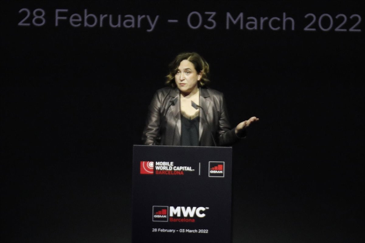 La alcaldesa de Barcelona, Ada Colau, en su discurso de la cena oficial del MWC 2022 - KIKE RINCÓN - EUROPA PRESS