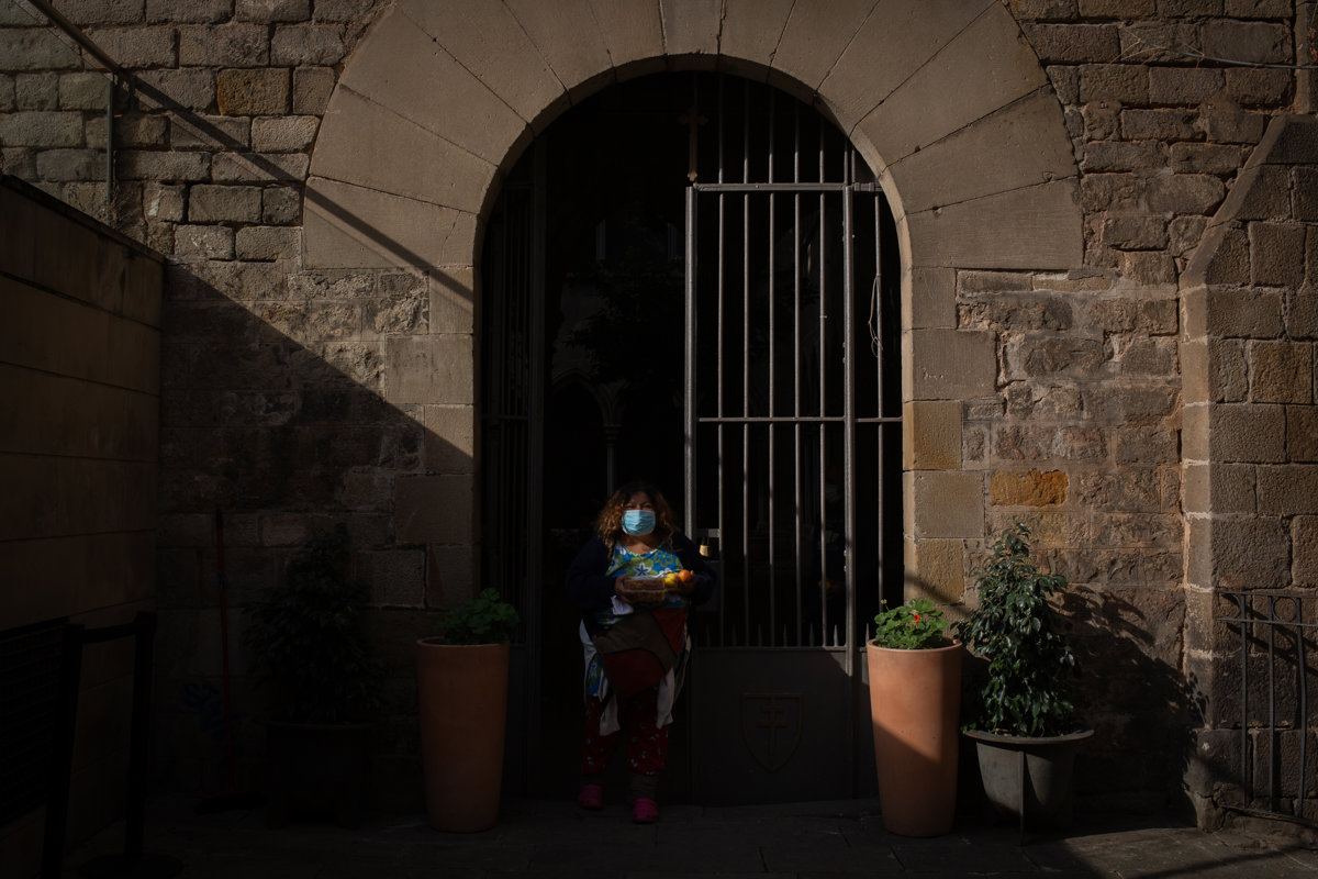 Una persona en la zona del Hospital de campaña instalado en la parroquia de Santa Anna - David Zorrakino - Europa Press