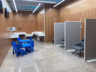 Las nuevas salas se encuentran en las zonas de embarque de la Terminal T1, tanto Schengen junto a las puertas C como No Schengen junto a las puertas E, y son accesibles también para personas con movilidad reducida: la entrada está controlada a través de un sistema telefónico que permite el acceso de manera remota y vigilada.