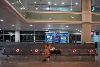 Una mujer espera sentada en unos asientos habilitados para preservar la distancia de seguridad en el Aeropuerto Josep Tarradellas Barcelona-El Prat, en Barcelona, Catalunya, (España), a 12 de septiembre de 2020. - Matias Chiofalo - Archivo