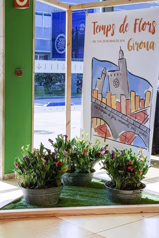 De esta manera, los pasajeros que aterrizan en Girona pueden empezar a disfrutar en el mismo aeropuerto de las exposiciones que más adelante podrán ver en la ciudad y que decoran con montajes florales monumentos, patios y jardines, entre otros lugares.