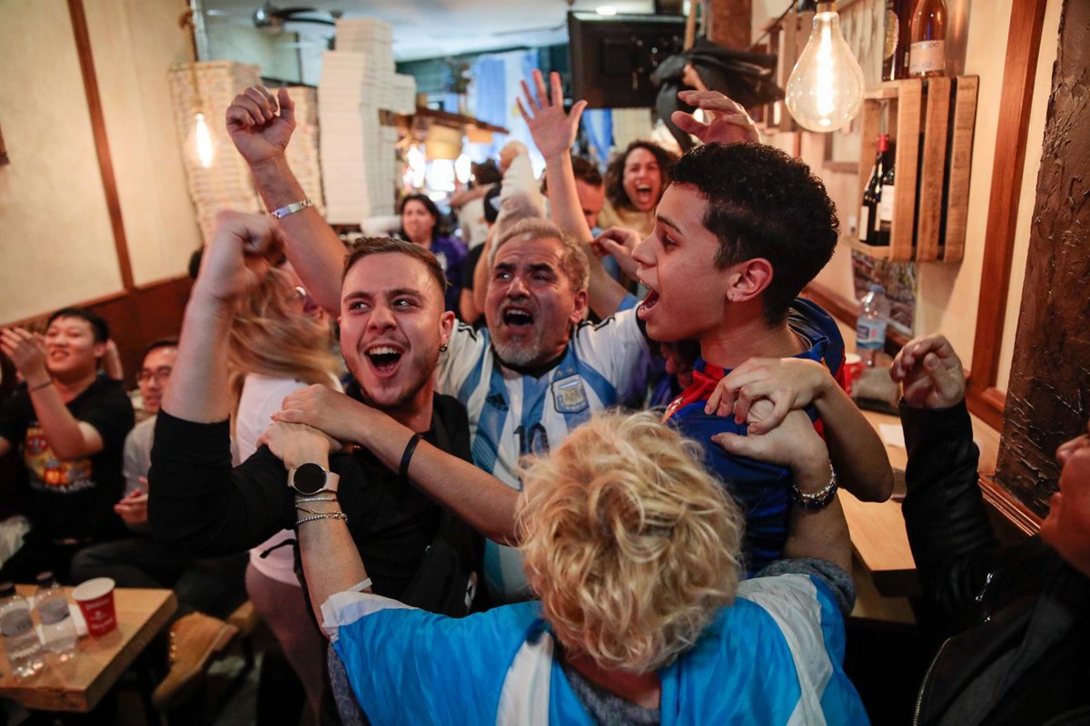 Aficionados argentinos siguen la final de la Copa del Mundo de Catar en el bar La Empanada de Papá, a 18 de diciembre de 2022, en Barcelona. - Kike Rincon/Europa Press