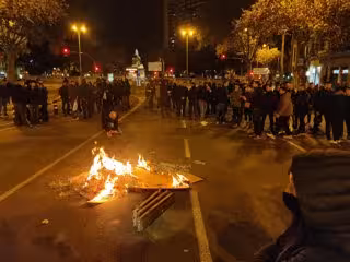 Más de un centenar de agentes de Mossos d'Esquadra han cortado este miércoles pasadas las 19 horas la Gran Via de Barcelona en la plaza Tetuán por sus condiciones laborales y salariales.
