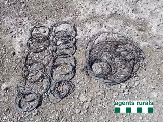Agentes rurales han decomisado doce trampas de caza ilegal de tipo lazo durante una inspección de un cercado con perros de caza en una finca del municipio de la Pobla de Cérvoles (Lleida).