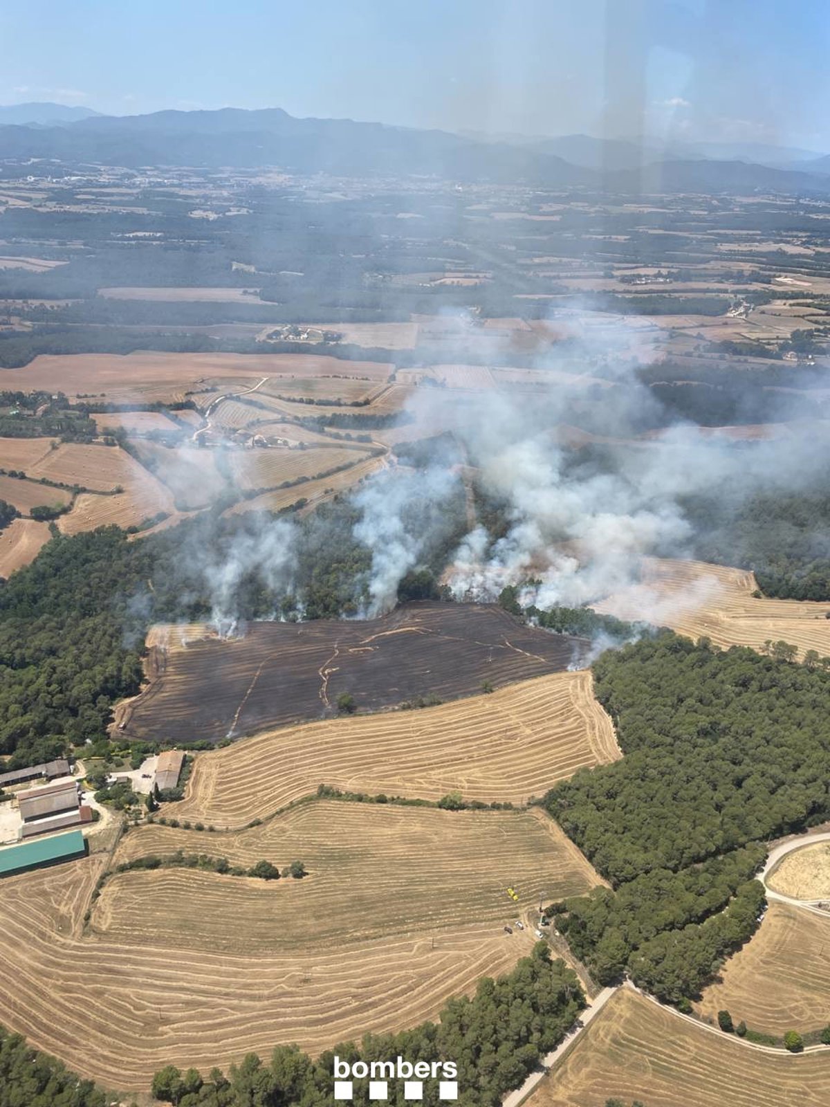 Fuego en una zona de vegetación agrícola de Vilademuls - @BOMBERSCAT