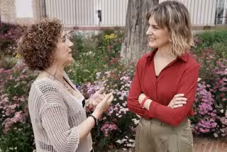 La líder de los comuns en el Parlament, Jéssica Albiach, con la alcaldable de la formación en Santa Perptua de Mogoda (Barcelona), Isabel Garcia. - EN COMÚ PODEM