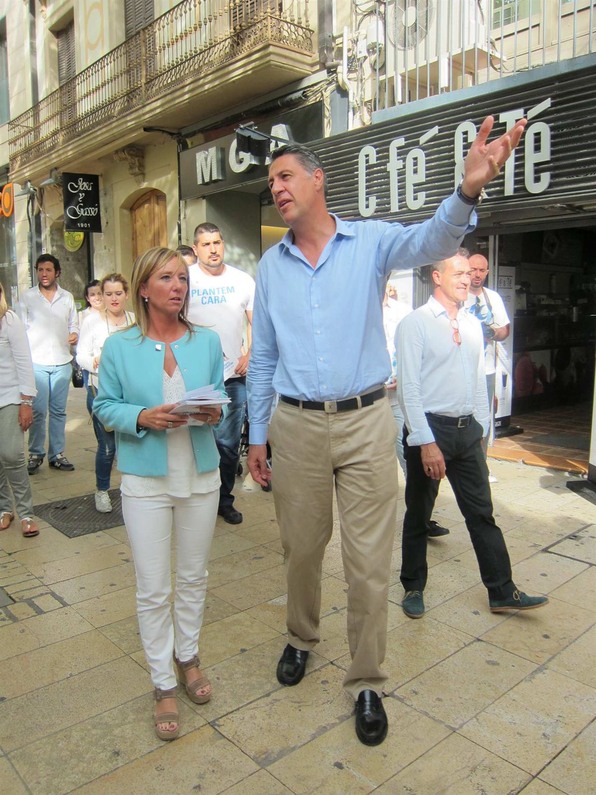 Tras pasearse por la plaza de Sant Joan, saludar a vecinos y comerciantes y visitar el stand del PP, Albiol ha pedido coherencia a C's, y se ha dirigido a Arrimadas para asegurarle que su partido, lejos de bajar el tono va "a mantener el tono fuerte frente a aquellos que quieren romper Catalunya del resto de España".