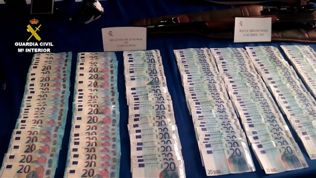 En la operación 'Sangla', la Guardia Civil registró una granja y un almacén de la familia del alcalde, y allí incautó en concreto 520 gramos de marihuana, 21,75 de cocaína, 6.800 euros, armas y matrículas falsas.