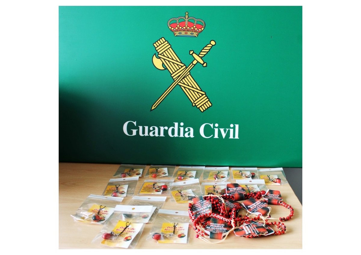 La Guardia Civil de Tarragona ha intervenido en un comercio de Cambrils 40 pulseras elaboradas con semillas de la especie 'Arbrus Precatorius' consideradas tóxicas y que si se ingieren pueden causar alucinaciones, un producto sobre el que pesa una alerta sanitaria.