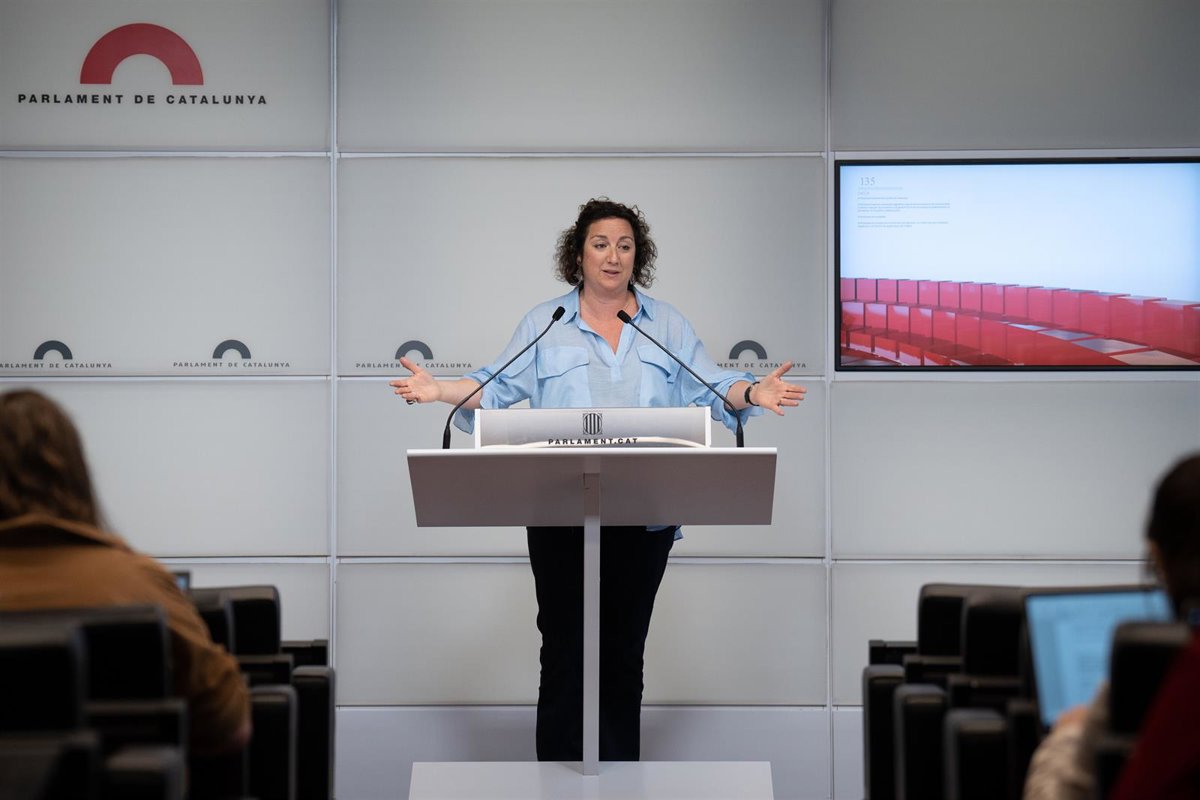 La portavoz del PSC en el Parlament, Alícia Romero, en rueda de prensa. - DAVID ZORRAKINO - EUROPA PRESS