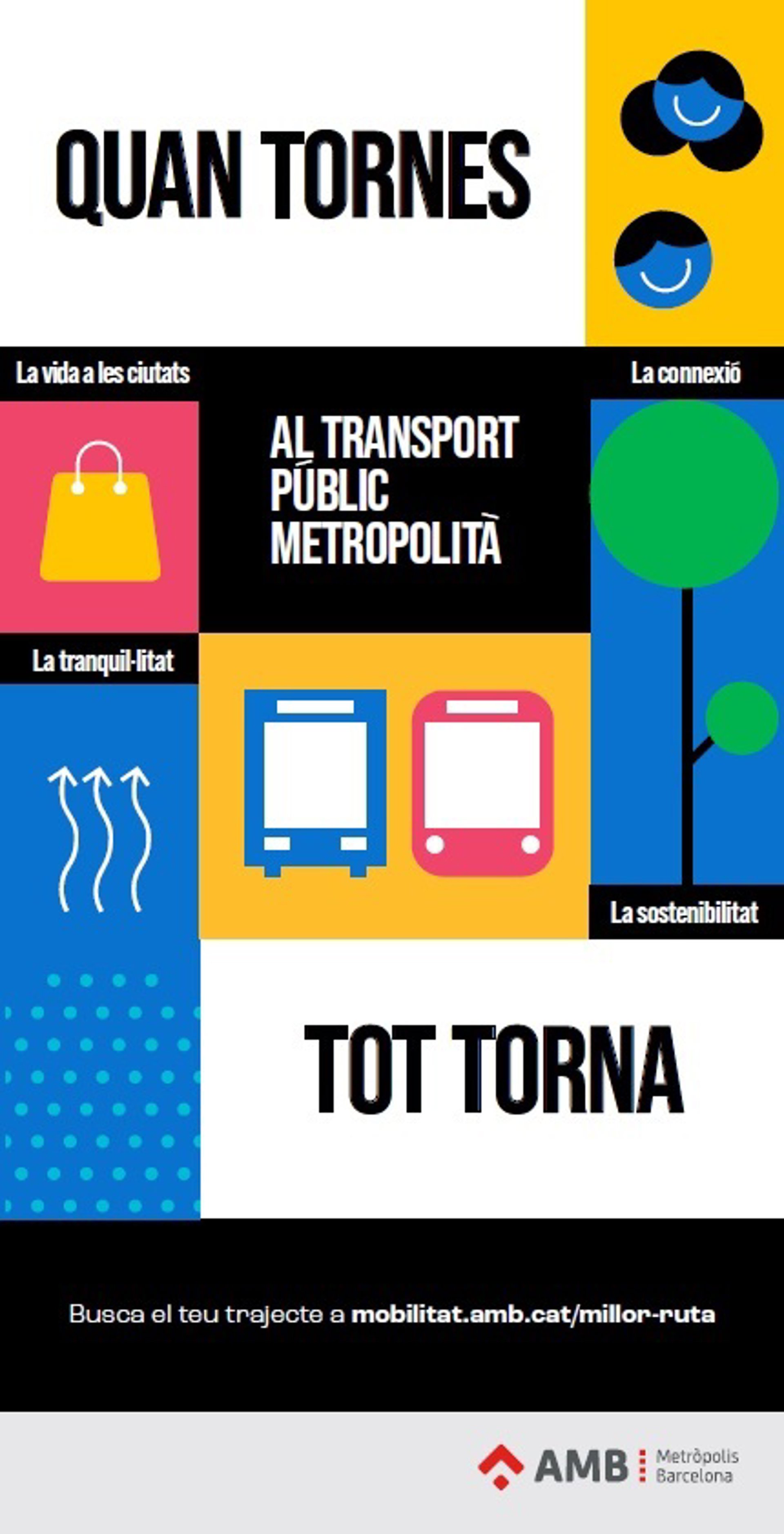 El ente metropolitano lanzará esta semana la campaña 'Quan tu tornes, tot torna' con el objetivo de recuperar usuarios y conseguir nuevos: la voluntad es que la gente vuelva a confiar en el transporte público del AMB para que sea nuevamente "la columna vertebral de la movilidad", junto con el resto de formas de movilidad sostenible.