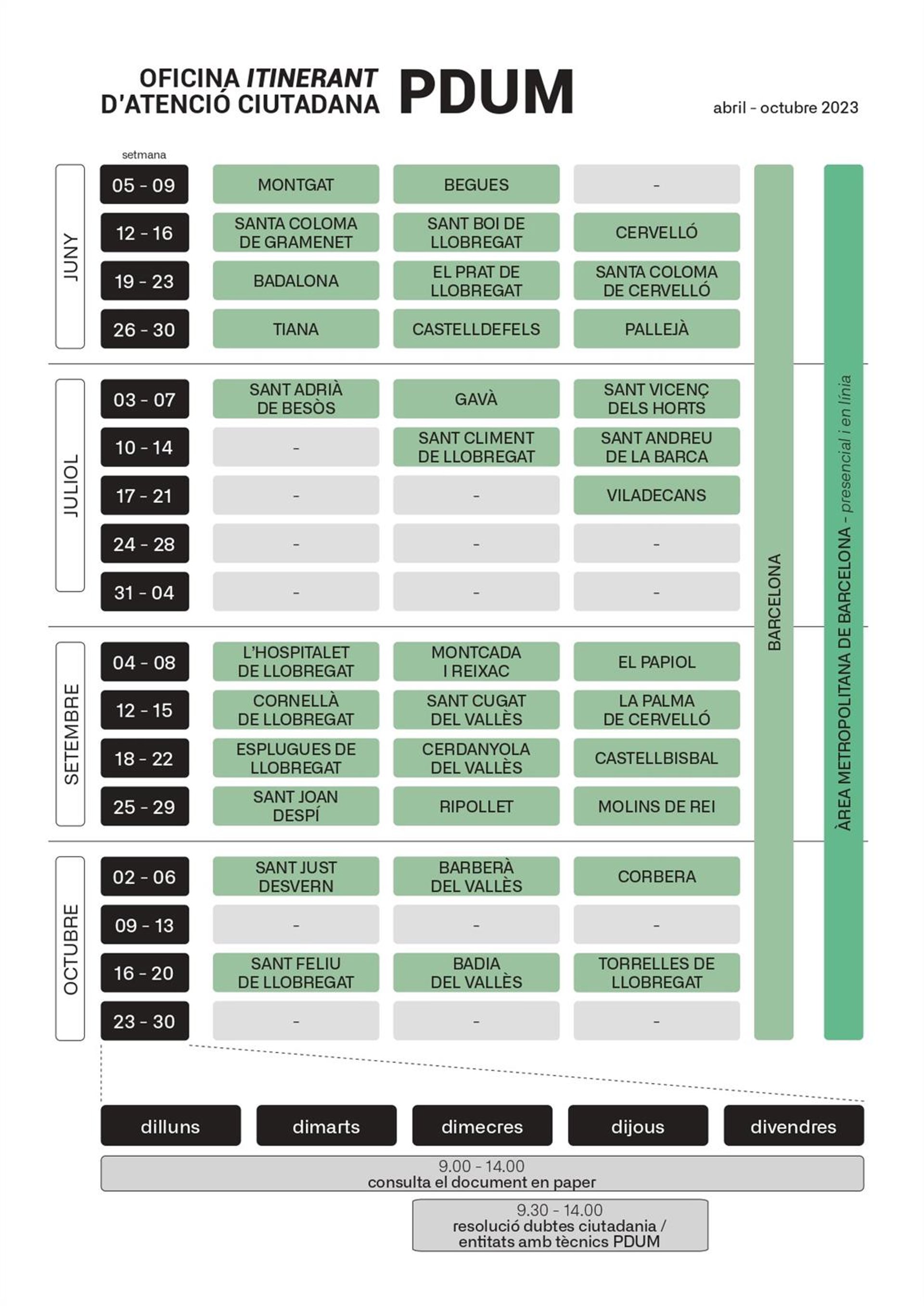 Horario de la oficina itinerante del Plan Director Urbanístico Metropolitano del AMB. - AMB