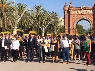 Unas 200 personas arropan a los exmiembros de la Mesa del Parlament ante el TSJC por el juicio por presunta desobediencia, el 21 de julio de 2020. - EUROPA PRESS