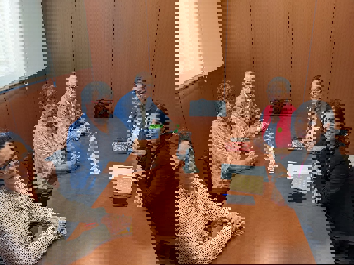 La reunión entre ANC y ERC, con el vicepresidente de la entidad, Jordi Pesarrodona, junto a miembros del Secretariado Nacional, y las republicanas Marta Vilalta y Meritxell Serret. - ANC