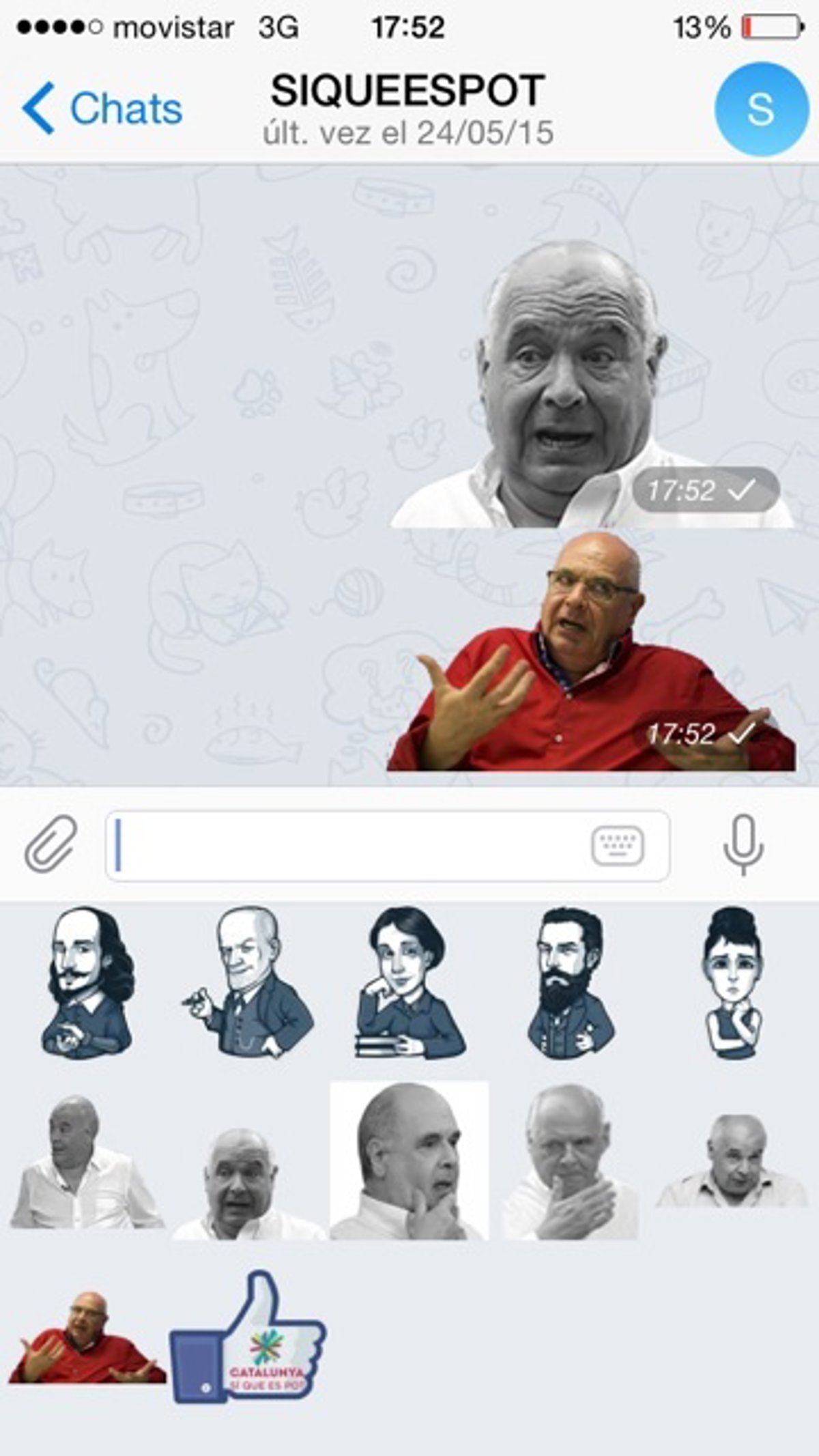 Lluís Rabell prometió "peinar Catalunya en campaña, ir puerta por puerta" para llevar su mensaje a todos. Eso es literalmente imposible, pero digitalmente alcanzable. Así lo han pensado los suyos, que han creado varios 'emoticonos' del candidato de CatSíQueEsPot con los que transmitir, a través de Telegram (el Whatsapp 'alternativo'), un estado de ánimo. ¡Tiembla, sevillana bailona!