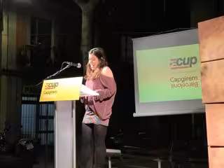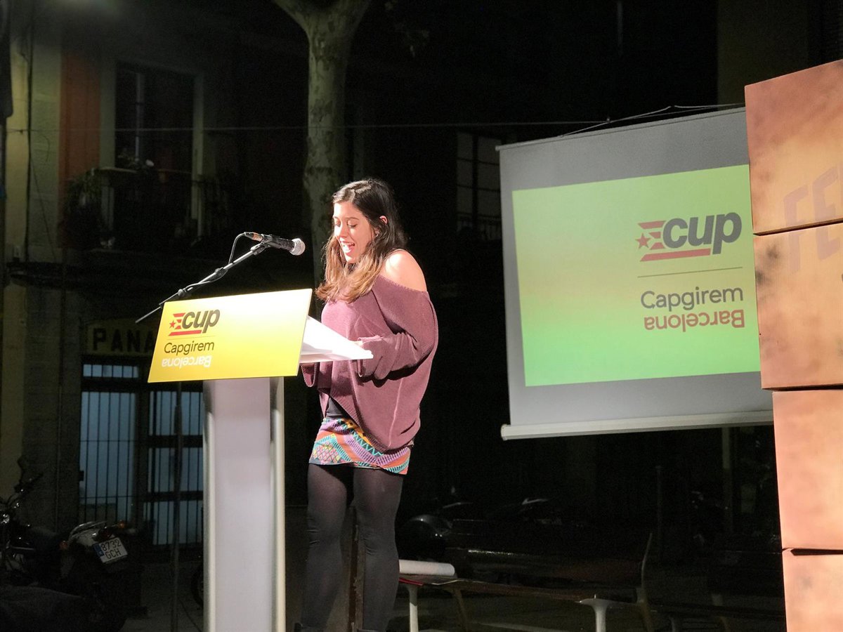 Interrumpida por un vecino que se quejaba gritos porque quería dormir, Saliente ha criticado a las multinacionales y a las ferias internacionales como el MWC, sobre la que ha dicho que paga a las mujeres según las medidas de su cuerpo: "¿Queremos una ciudad gobernada por los especuladores? ¿Queremos una ciudad escaparate o viva y diversa?", y ha urgido a votar a la CUP para que no manden los de siempre.