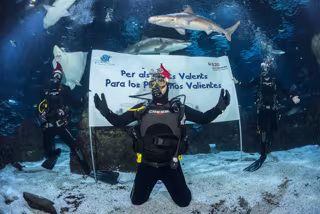 Según ha informado en un comunicado el centro marino, el cantante ha protagonizado una inmersión solidaria en el oceanario donde viven 13 tiburones y más de 5.000 piezas de distintas especies.